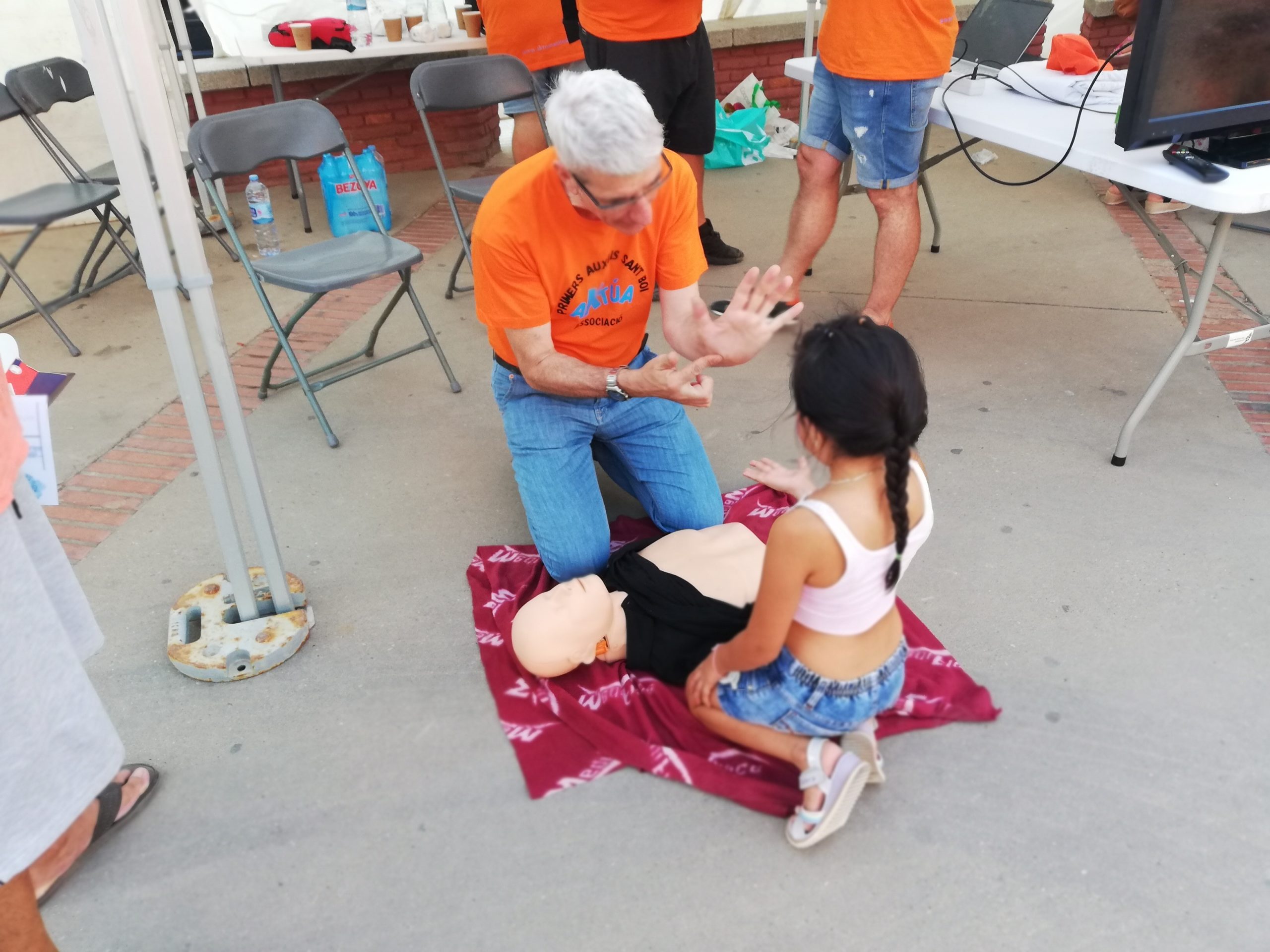 Col·laboració d’entitats en el dia internacional del TDAH. Més de 100 nens i adults han après a telefonar al 1-1-2, reconèixer una persona inconscient, col·locar-la de costat (PLS), realitzar una reanimació cardio pulmonar, efectuar una maniobra de Heimlich, etc… Gràcies a l’Ajuntament de Sant Vicenç dels Horts i a Trinidad Capdevila, presidenta de FEM CAMÍ Al TEU COSTAT per la invitació i especialment a Maria Peláez, regidora, per confiar en el nostre projecte…